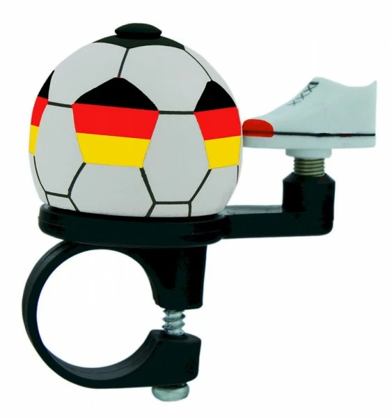 Fußball-Glocke Deutschland Größe ca. 38 mm mit Schuh-Federklöppel mit Länderflagge Deutschland für Lenkerdurchmesser 22,2 mm