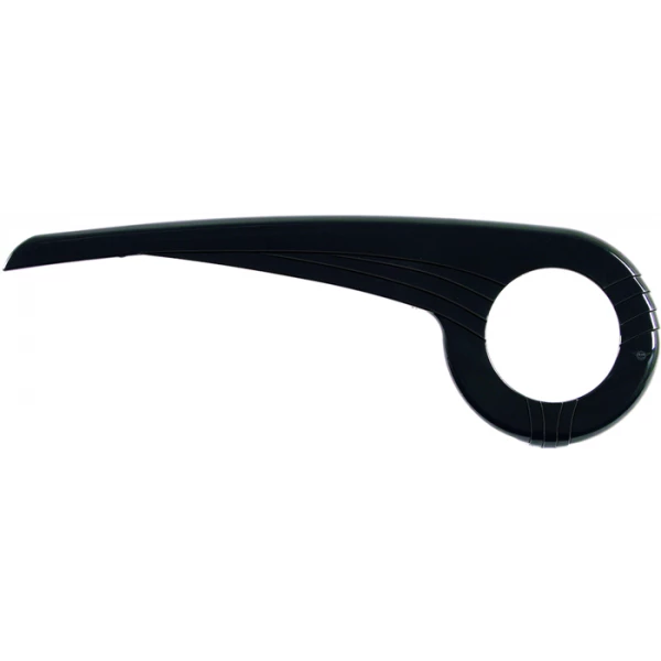 aus ABS Modell 0340 E1 – Halbabdeckung, längste Länge (ohne Befestigungen) passend für vordere Kettenblätter mit bis 33 Zähnen (z. B. für NEXUS)|Modell 0340 E1, 33 Zähne, Farbe: schwarz, Hochglanz poliert.