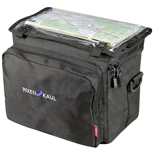 Auf der Taschenoberseite ist zusätzlich eine transparente Kartenhülle mit Druckknöpfen befestigt.