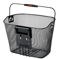 Feinmaschiger KLICKfix Korb für vorne. hohe Bauform incl. Tragbügel. Die Adapterplatte auf der Korbrückwand ist höhenverstellbar. So lässt sich die Korbposition exakt ans Rad anpassen und es bleibt genügend Platz für den Scheinwerfer. Volumen 18 Liter. Farbe: schwarz